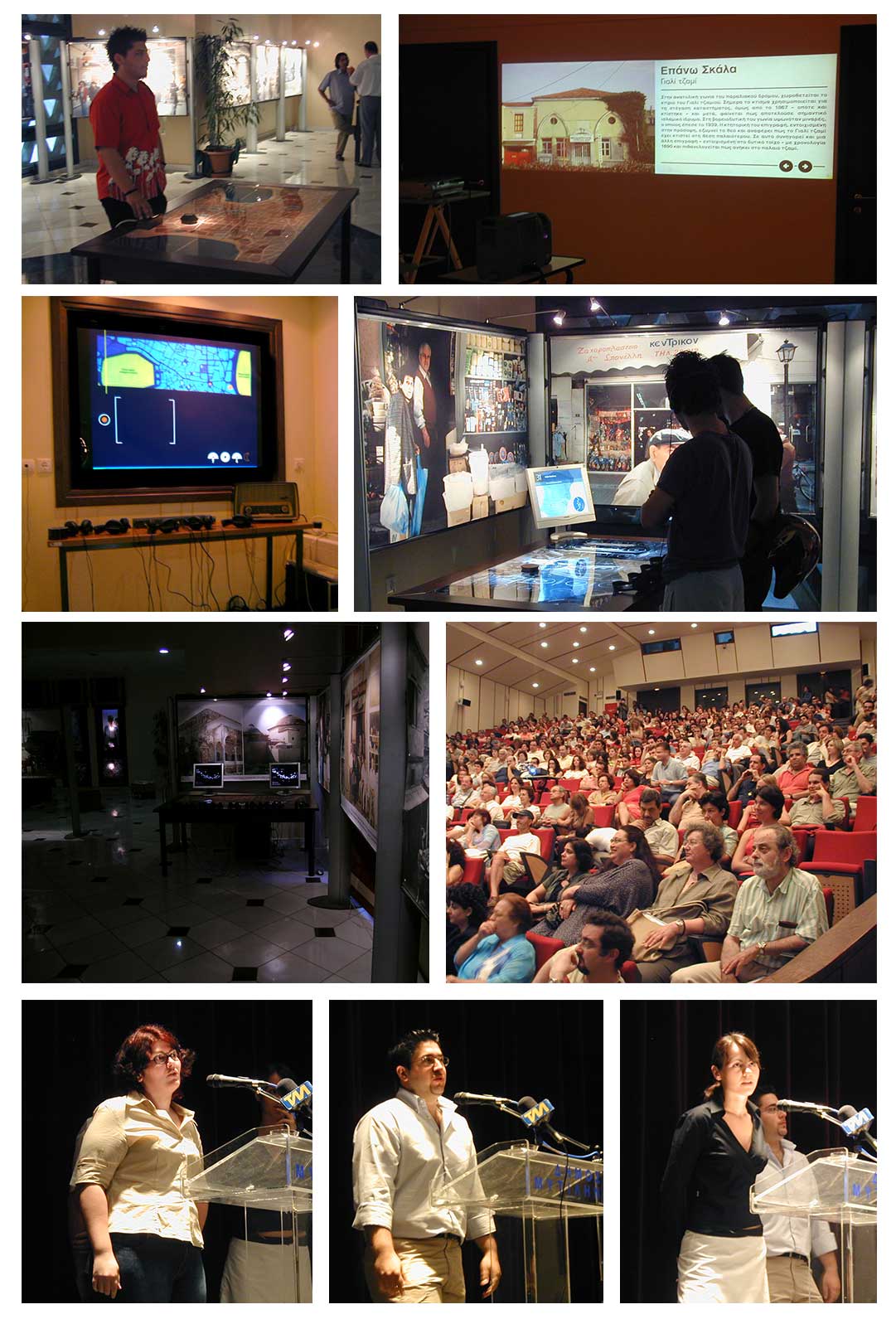 Τα τελικά προϊόντα που παρουσιάστηκαν, καθώς και ο εκθεσιακός σχεδιασμός, ολοκληρώθηκαν από τους τριτοετείς φοιτητές της κατεύθυνσης «Πολιτιστική Αναπαράσταση & Νέες Τεχνολογίες» (2002 - 2003 και 2003 - 2004), του Τμήματος Πολιτισμικής Τεχνολογίας & Επικοινωνίας, υπό την επίβλεψη των Δ. Παπαγεωργίου (γενική επιμέλεια, συλλογή, ταξινόμηση και επιλογή ερευνητικού υλικού), Γ. Πεχλιβανίδη (design εφαρμογών), Ν. Μπουμπάρη (επιμέλεια εφαρμογών «ηχοτοπίου»), Θ. Μαυροφίδη (επιμέλεια ψηφιακών πολυμεσικών εφαρμογών), Α. Σπάθη και Π. Κάργα (επιμέλεια ψηφιακών εγκαταστάσεων).
