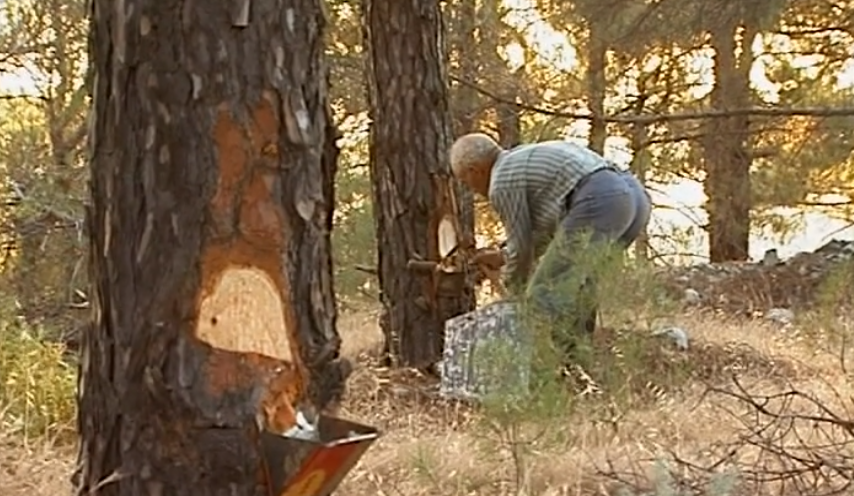 Ντοκιμαντέρ για τους ρητινοπαραγωγούς της Λέσβου, με επίκεντρο το παράδειγμα του Αμπελικού Λέσβου. Μέσα από τις πρακτικές συλλογής της ρητίνης πριν και μετά το Β’ Παγκόσμιο Πόλεμο, αναδύεται μια ακολουθία εμπειρικών πρακτικών και αντιλήψεων της καθημερινής ζωής που συνάδουν με το Μεσοπόλεμο, τη Γερμανική Κατοχή, το «Αντάρτικο (Εμφύλιο)», αλλά και την επακόλουθη μετανάστευση, που αποσάθρωσε τις κοινωνικές, οικονομικές και πολιτισμικές δομές της περιφέρειας της Λέσβου, μετά τη δεκαετία του 1950. Έγινε δεκτό στο Eco-festival της Ρόδου (2009) και παρουσιάστηκε επανειλημμένα στην ΕΡΤ (2010-2012).